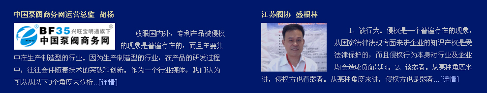 泵閥商務網 - 泵閥行業專業網絡宣傳媒體   客服熱線:0571-87209798  加盟熱線:0571-87209799  投稿熱線:0571-81020275